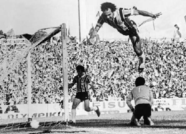 Carlos André Avelino de Lima, o Catimba, fez um total 67 gols com a camiseta do tricolor gaúcho. Mas aquele marcado dia 25 de setembro de 1977 foi o mais importante de todos eles. E sua perigosa comemoração uma das mais estúpidas da história do nosso futebol. Foi perdoado apenas porque a ausência nos minutos restantes do primeiro tempo e em toda a segunda etapa da partida não impediu a vitória e a reconquista da hegemonia, contra um adversário tradicional e que era, naquele momento, bicampeão brasileiro. O público atingiu 57.186 pessoas, que foram testemunhas de um jogo emocionante.