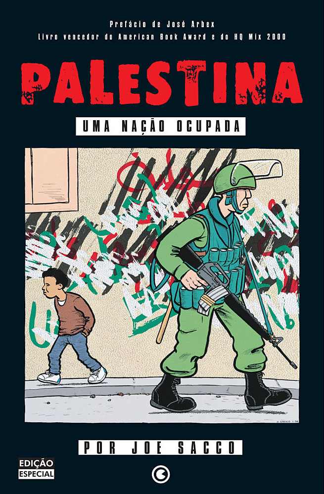 O trabalho jornalístico nesse caso é como o de alguém que recolhe todos os retalhos possíveis e com eles faz uma colcha. São pedaços de histórias que se entrelaçam; são desenhos que se seguem, costurando a narrativa em cada quadrinho. A arte de Sacco leva os seus leitores diretamente a vários depoimentos dados por aqueles que vivem os dramas diários na região. Mostra uma nação ocupada, mas com a honestidade de procurar entender motivações. Há sinceridade maior do que na imensa maioria das coberturas feitas até hoje pelos grandes meios de comunicação. E agora, quando outra vez o ódio mútuo e as agressões explodem, mostrando que os momentos de paz são apenas intervalos entre as conflagrações, se faz necessário ler – ou reler, no meu caso – algo que tenta iluminar causas e prevenir consequências. Tudo em preto e branco, exceto a capa. Como convêm.