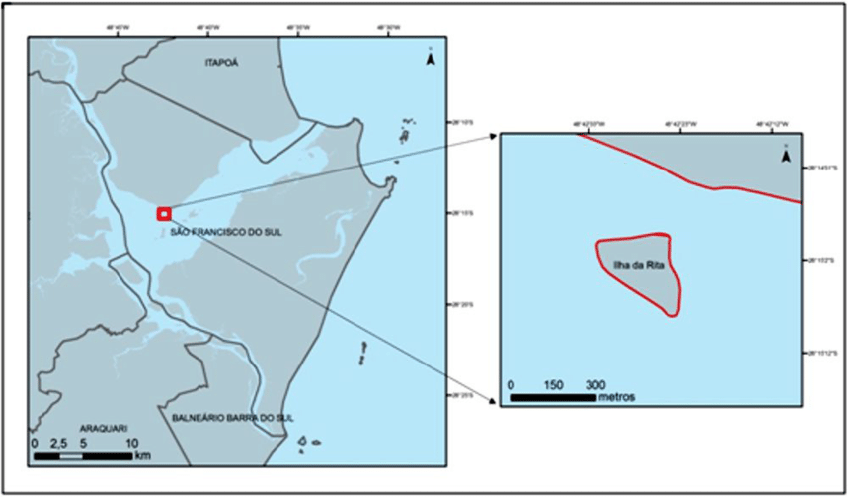 Essa ilha fica na Baía da Babitonga, na foz do rio Palmital, entre as cidades de Joinville e Itapoá, um dos estuários mais importantes do vizinho Estado. Sua localização exata é definida pelas coordenadas 26°15’03″S 48°42’29″W. É um verdadeiro santuário ecológico, onde o passado registra envolvimento com mortes, se não diretamente no local, na certa causadas por quem dele fez uso, ao longo do conflito.