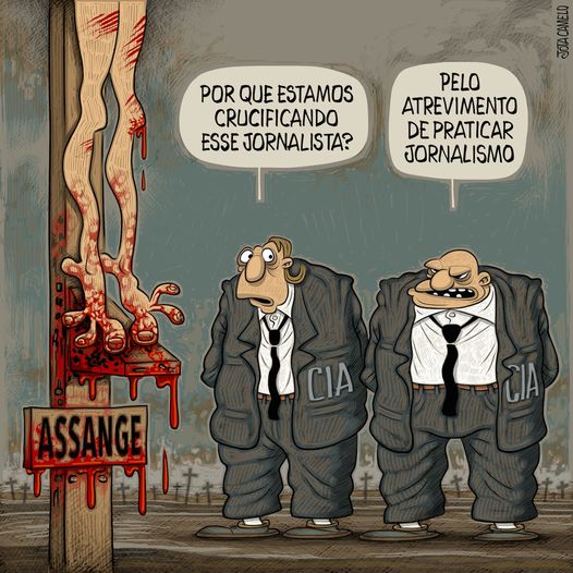 Charge do paulista Jota Camelo, sobre perseguição ao jornalista Julian Assange
